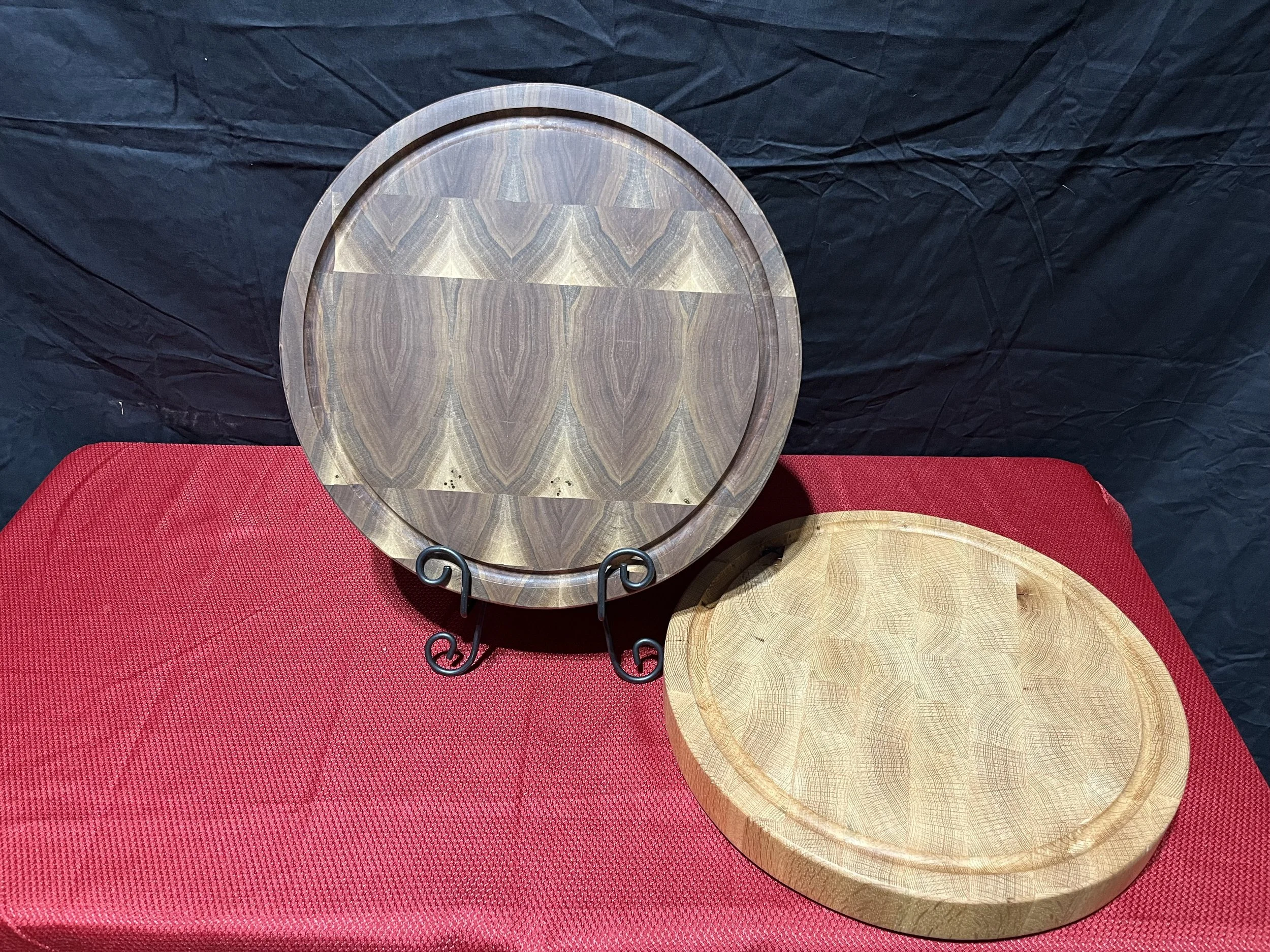 12” Round Inlayed Cutting Board, comes in Walnut and Cherry, $50