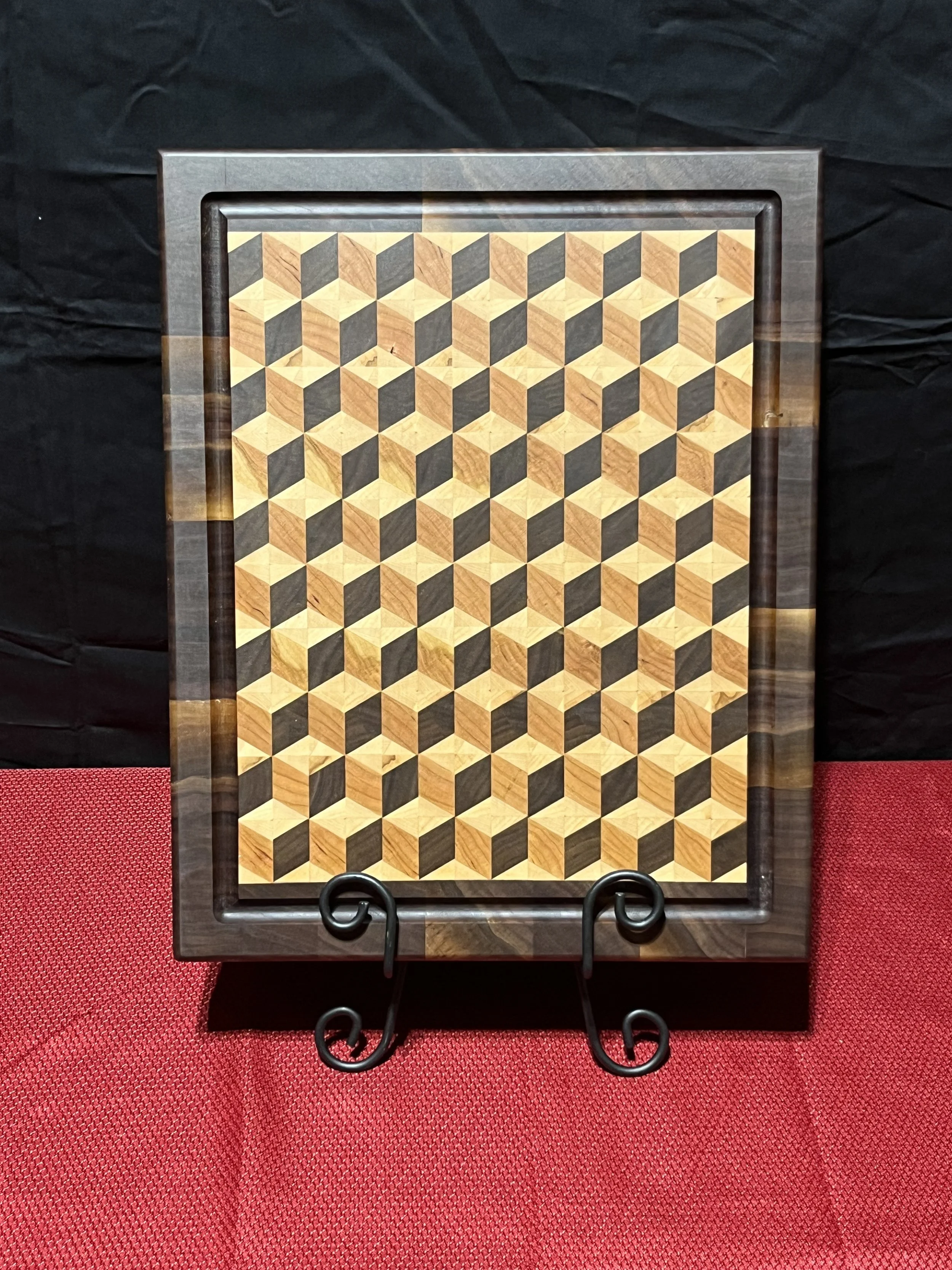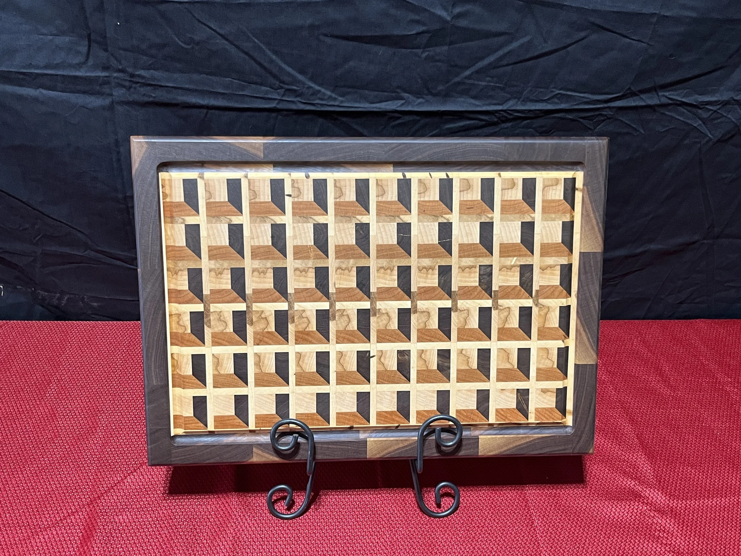 3D Box End Grain Cutting Board, 12x16x1 1/2, Walnut, Cherry, and Maple $125