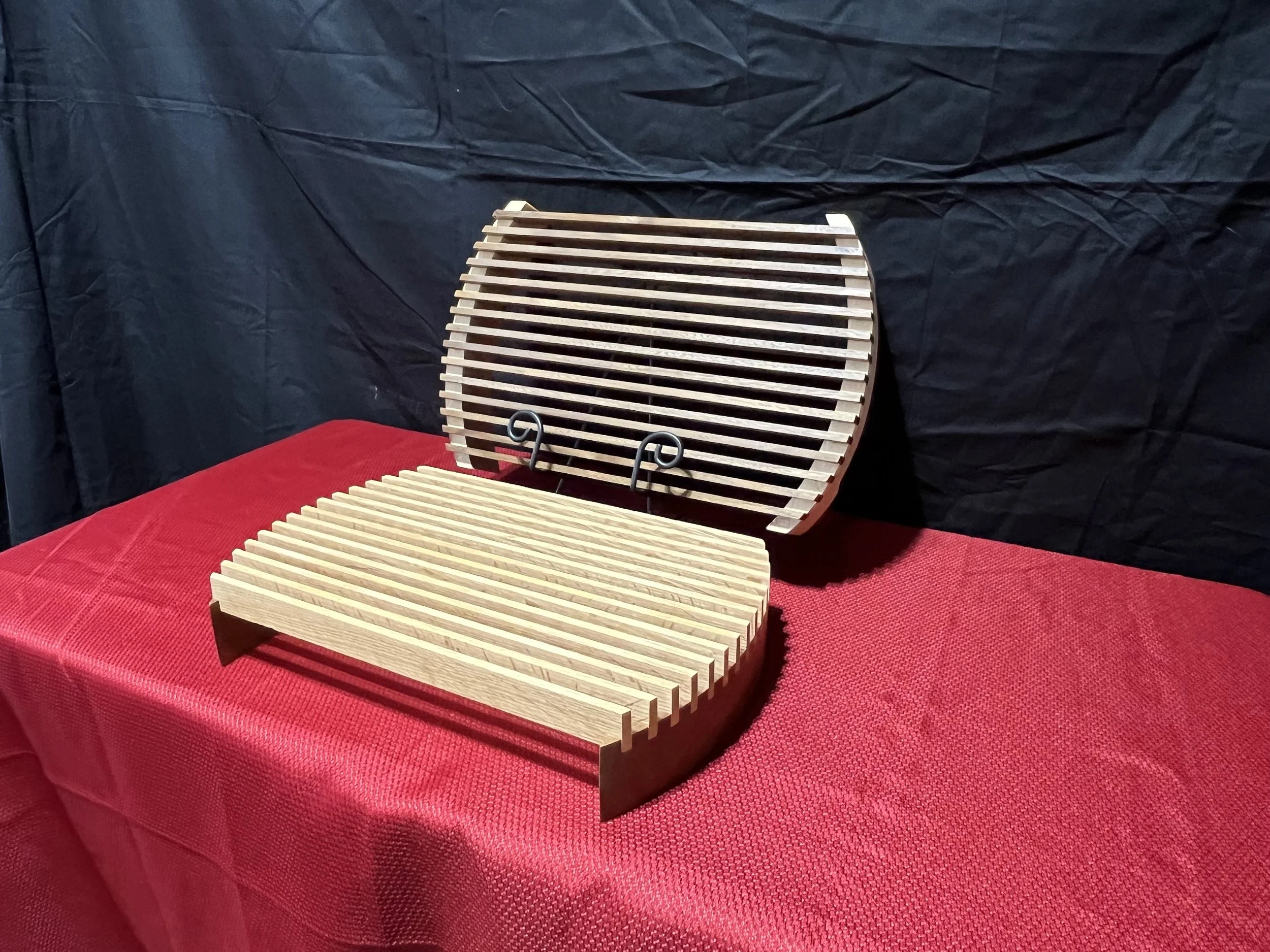 Bread Slicing Tray, Walnut and Maple, the slatted top is removable to empty crumbs, $40