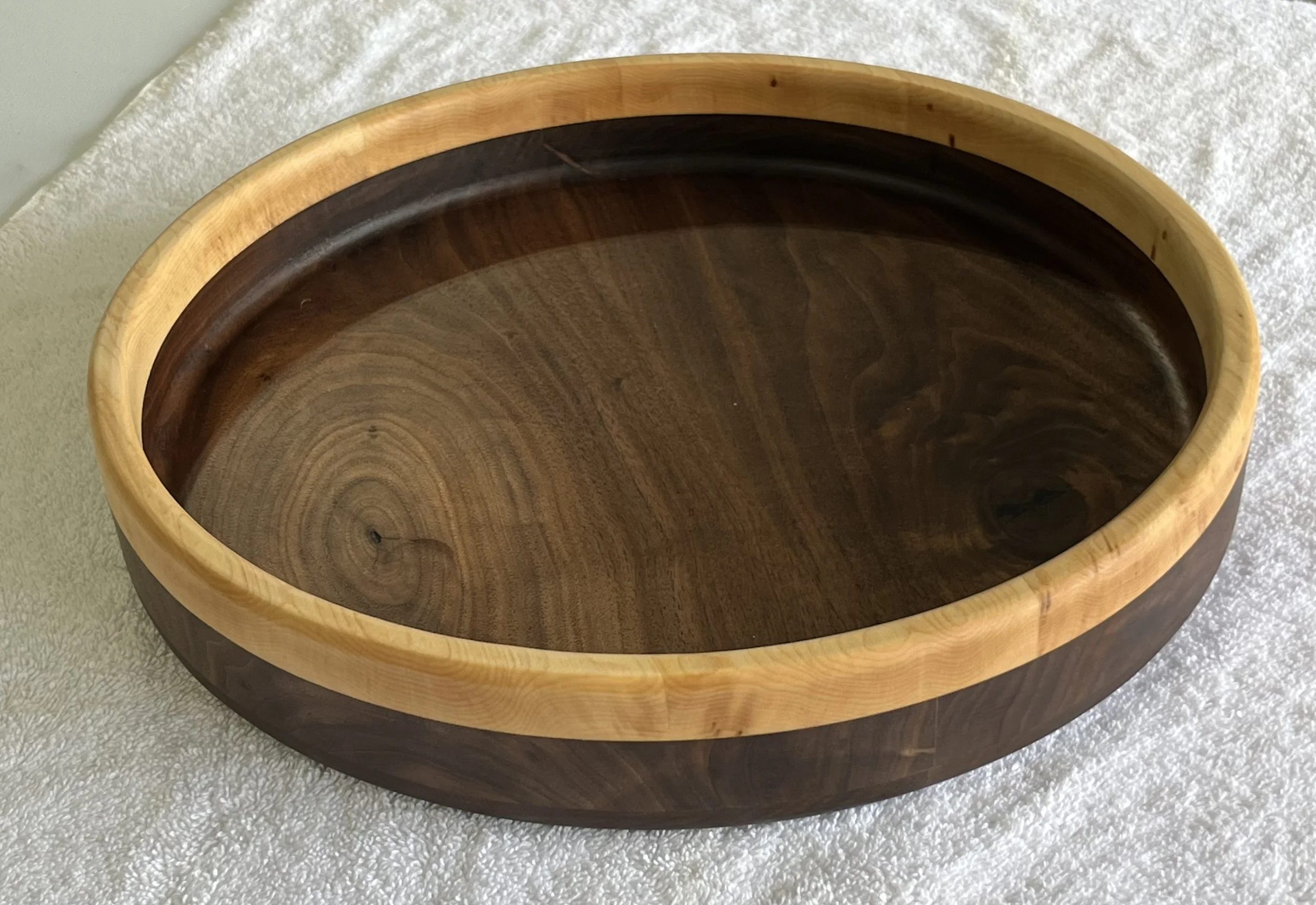 8x20x3/4 Woven Serving tray, Walnut and Maple with Paduk inlay, $50
